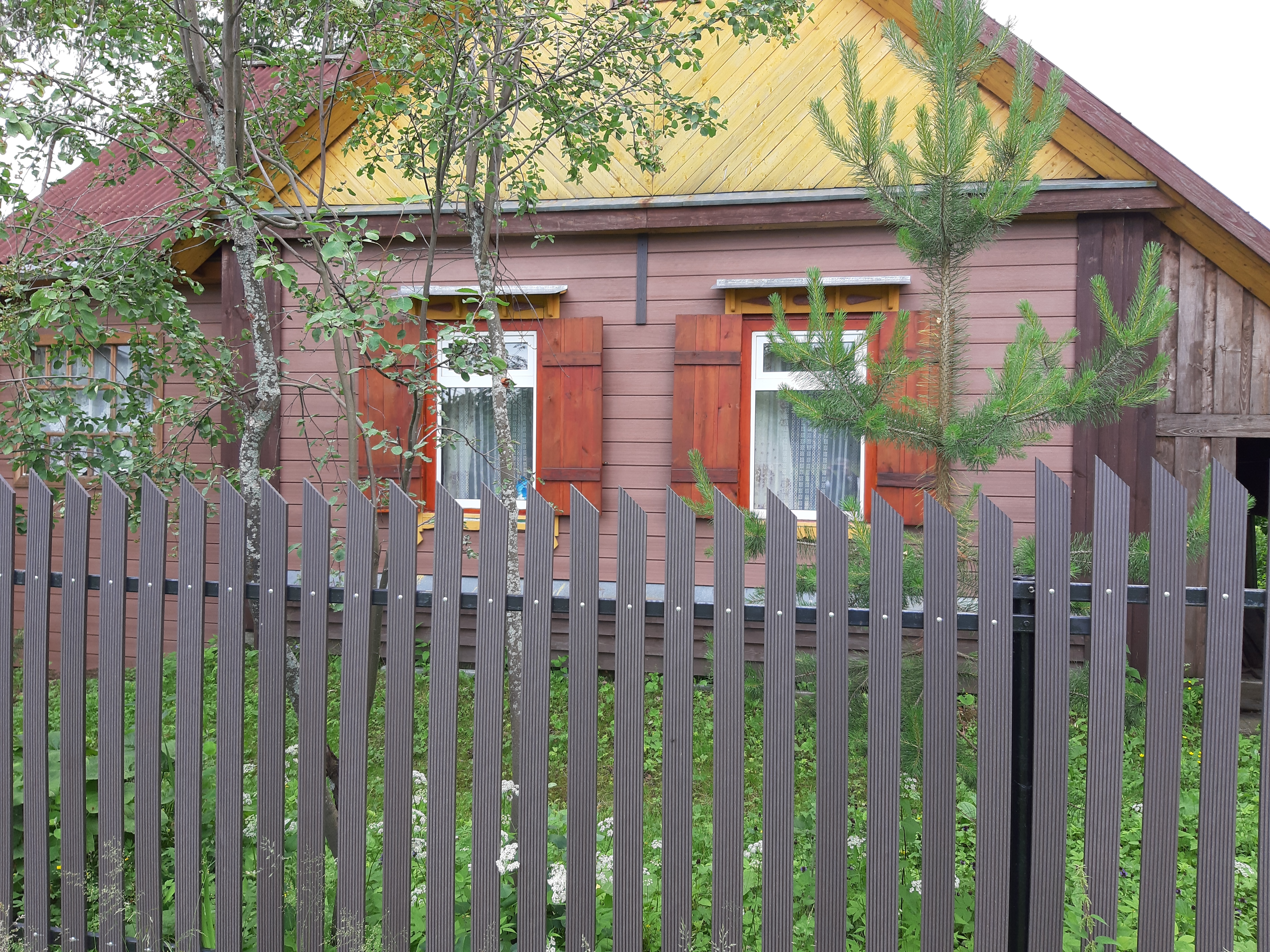 Для реализации этого проекта, нам понадобился специальный узкий полнотелый штакетник из ДПК. Ведь у владельца не так много времени посещать дачу и постоянно поддерживать деревянный штакетник в идеальной форме. Для ДПК-же такой уход не требуется и достаточно просто использовать по мере необходимости специальное средство для очистки ДПК и средство для защиты декинга. И он прослужит вам долгие годы не потребовав ничего дополнительно.