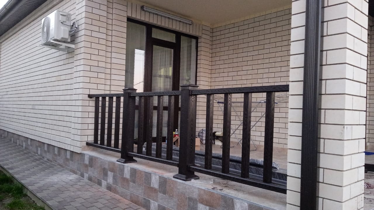Перила пришлось пилить под углом и крепить без хомутов-креплений, так как клиент отказался покупать дорогие алюминиевые хомуты с шарнирами